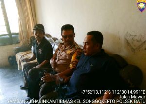 Binmas Polsek Batu Kota-Polres Batu dalam rangka sinergi dan harkamtibmas Bripka Junaedy Salam Bhabinkamtibmas Kelurahan Songgokerto Sabtu (15/09/2018) pukul.12.00 Wib Melaksanakan kegiatan sambang dan silaturahmi kepada warga Tokoh Masyarakat Bapak.Sugeng warga di wilayah RT.02 RW.07 Tambuh Kelurahan Songgokerto Kecamatan Batu.