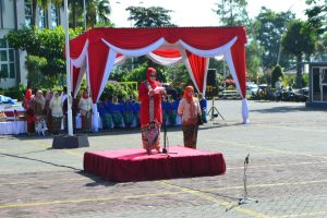 Kajari Kota Batu membacakan amanat Walikota Batu, mengucapkan terimakasih kepada semua Forkopimda Kota Batu karena berkanan hadir dalam acara Upacara Peringatan Hari Kartini 2019.