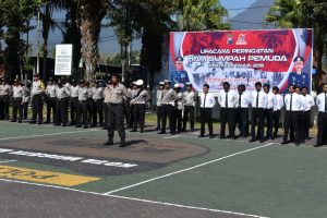 Bertajuk “Bersatu Kita Maju” upacara kali ini diikuti oleh seluruh anggota Polres Batu baik itu PJU, seluruh perwira dan bintara serta PNS Polres Batu. Tak hanya itu dalam kegiatan ini juga dihadiri oleh anggota ke-6 Polsek yang berada di bawah naungan Polres Batu.