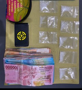Selain sabu polisi juga mengamankan, satu timbangan elektronik, satu dompet berisi plastik klip bening, dua skrup warna merah dan hijau, satu unit HP merek Poco dan Uang tunai senilai Rp 1.140.000.